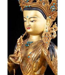 Vajrasttva Full Gold Gilded Copper Statue 24.5 cm W x 51 cm H x 20 cm D