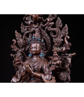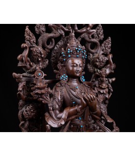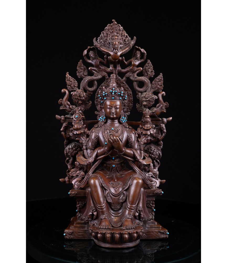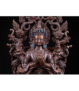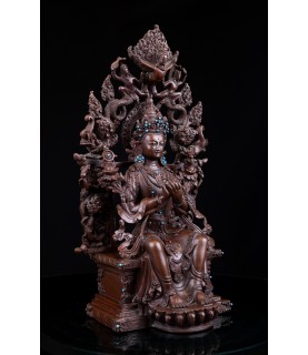 Maitreya Buddha Copper Oxidized Statue 16 cm W x 35 cm H x 14 cm D