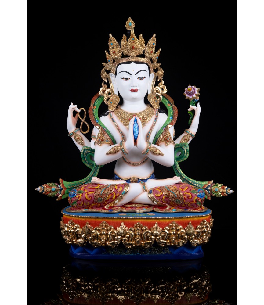 Khacheri may be the most popular of all Buddhist deities, except for Buddha himself -- he is beloved throughout the Buddhist world. He is known by different names in different lands: as Avalokiteshvara in the ancient Sanskrit language of India, as Kuan-yin in China, as Kannon in Japan. As Khacheri, he is considered the patron Bodhisattva of Tibet, and his meditation is practiced in all the great lineages of Tibetan Buddhism. The beloved king Songtsen Gampo was believed to be an emanation of Khacheri, and some of the most respected meditation masters (lamas), like the Dalai Lamas and Karmapas, who are considered living Buddhas, are also believed to be emanations of Khacheri.