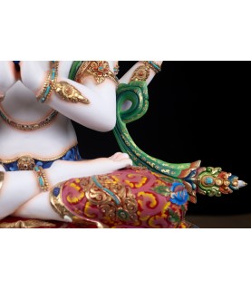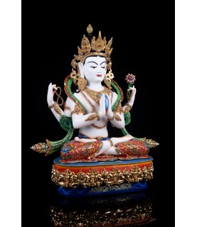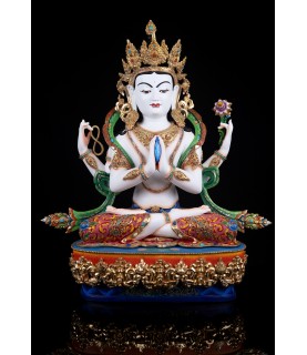 In the Tibetan Buddhist pantheon of enlightened beings, Khacheri is renowned as the embodiment of the compassion of all the Buddhas, the Bodhisattva of Compassion. Avalokiteshvara is the earthly manifestation of the self born, eternal Buddha, Amitabha. He guards this world in the interval between the historical Shakyamuni Buddha, and the next Buddha of the Future Maitreya.