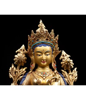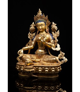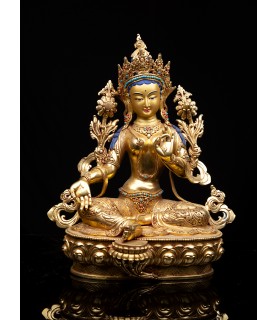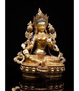 Green Tara Full Gold Gilded Copper Statue 30 cm W x 36 cm H x 17 cm D
